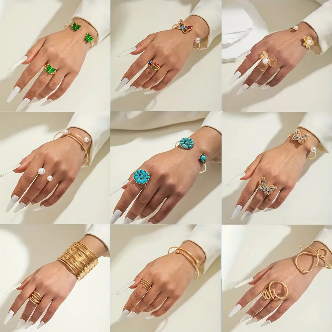 <p><strong>Fashion Colored Rhinestone Butterfly & Flower Ring Bracelet Set</strong> – Add sparkle and elegance to...