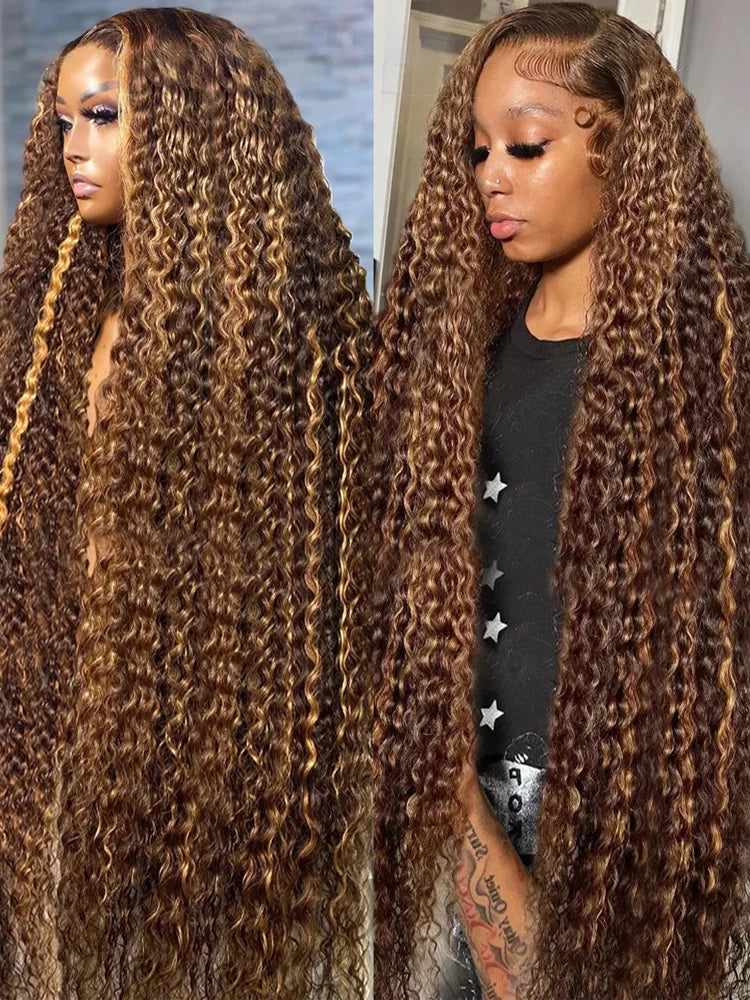 30Inch Highlight Ombre Deep Wave Glueless Wig Human Hair Ready To Wear Brazilian Colored 13x4 Curly Lace Frontal Wigs For Women