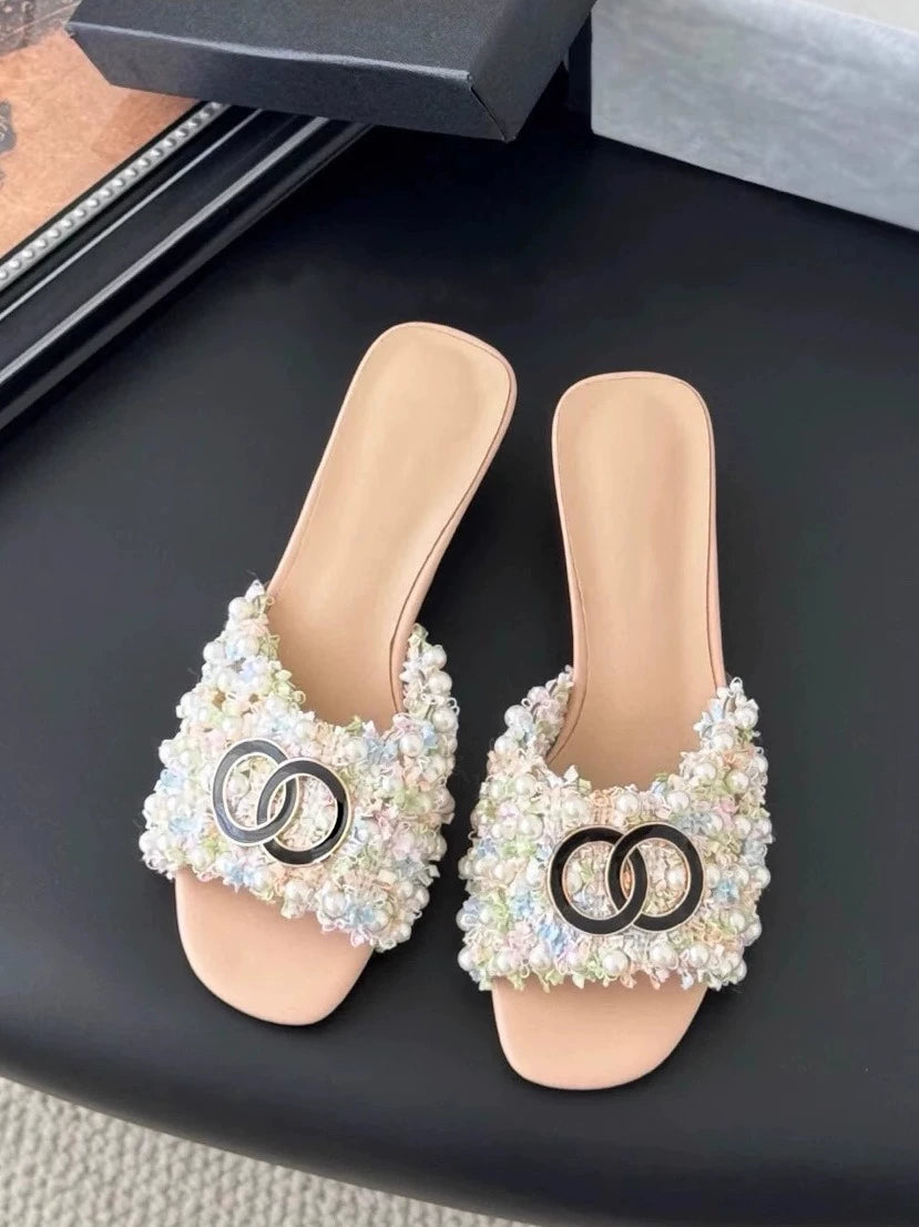 Uncle New Arrival Classic Style Slippers Women's Summer Outwear Thick Sole Pearl Beach Loafers British Style Sandals
