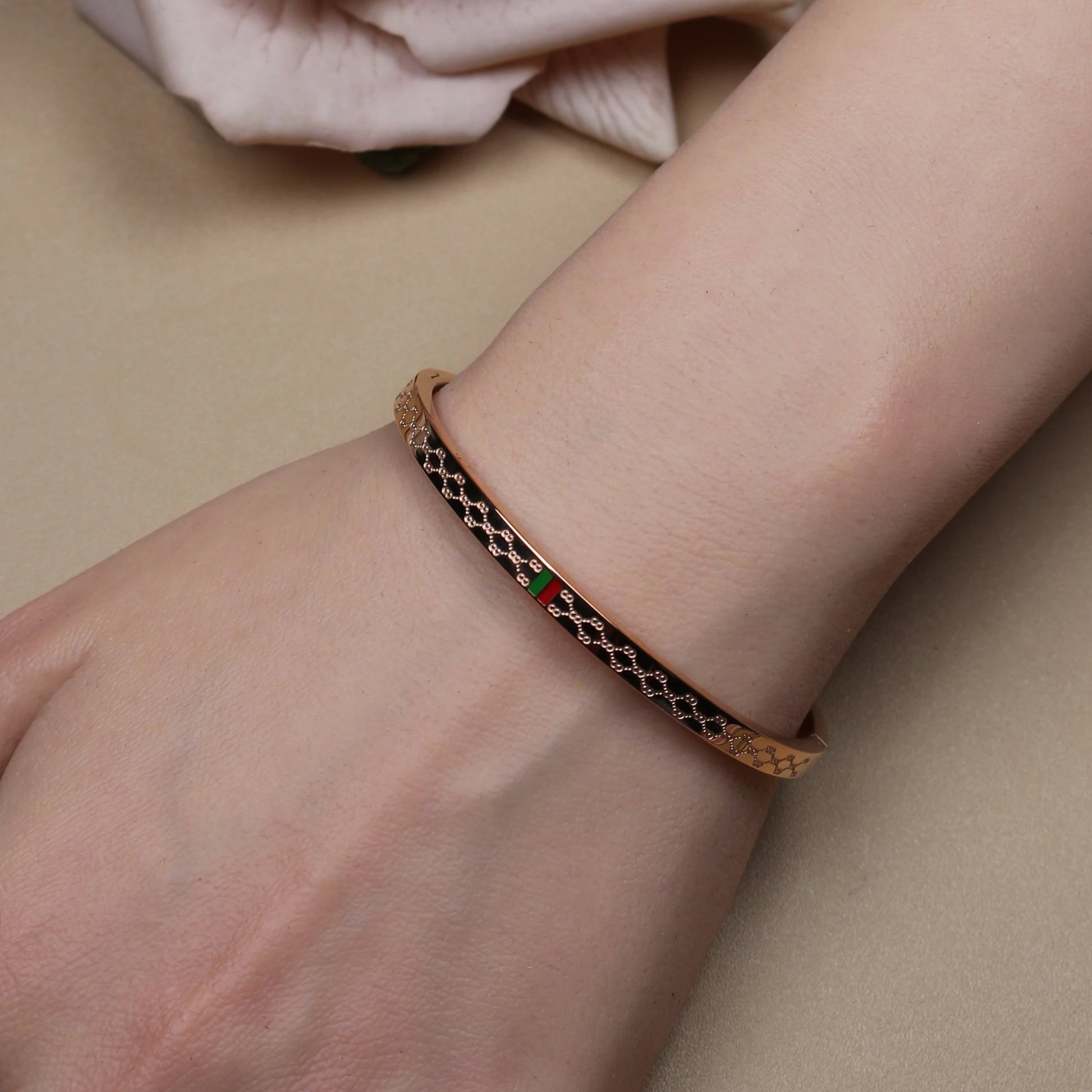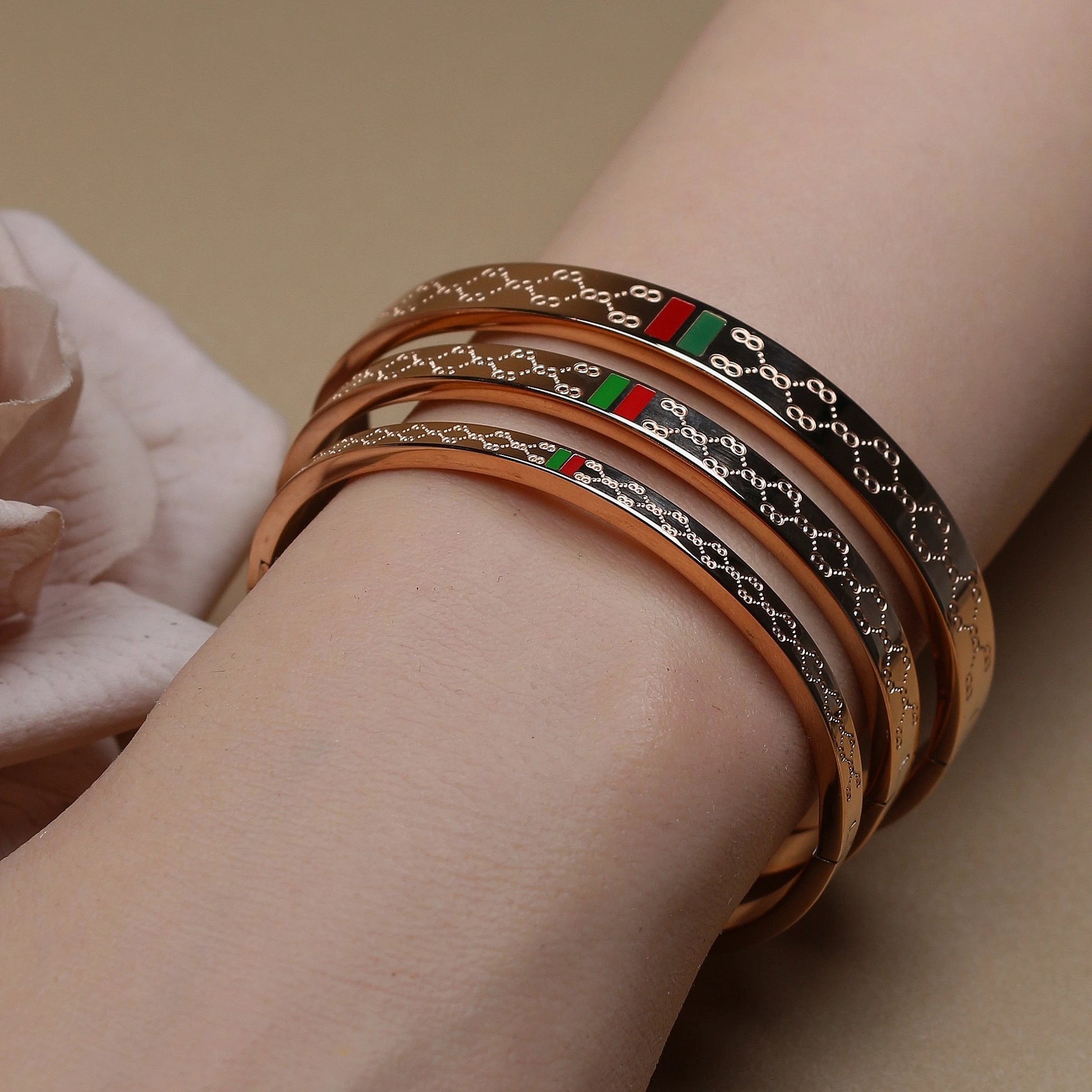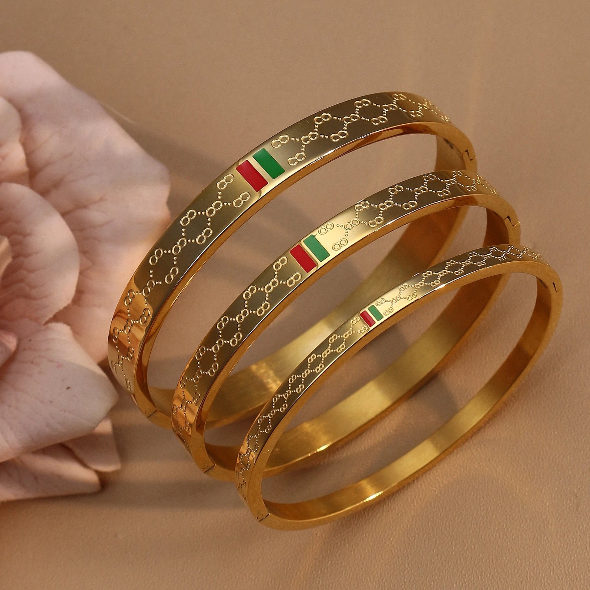 18K Gold Plated Unisex Bangles with Red/Green Accents