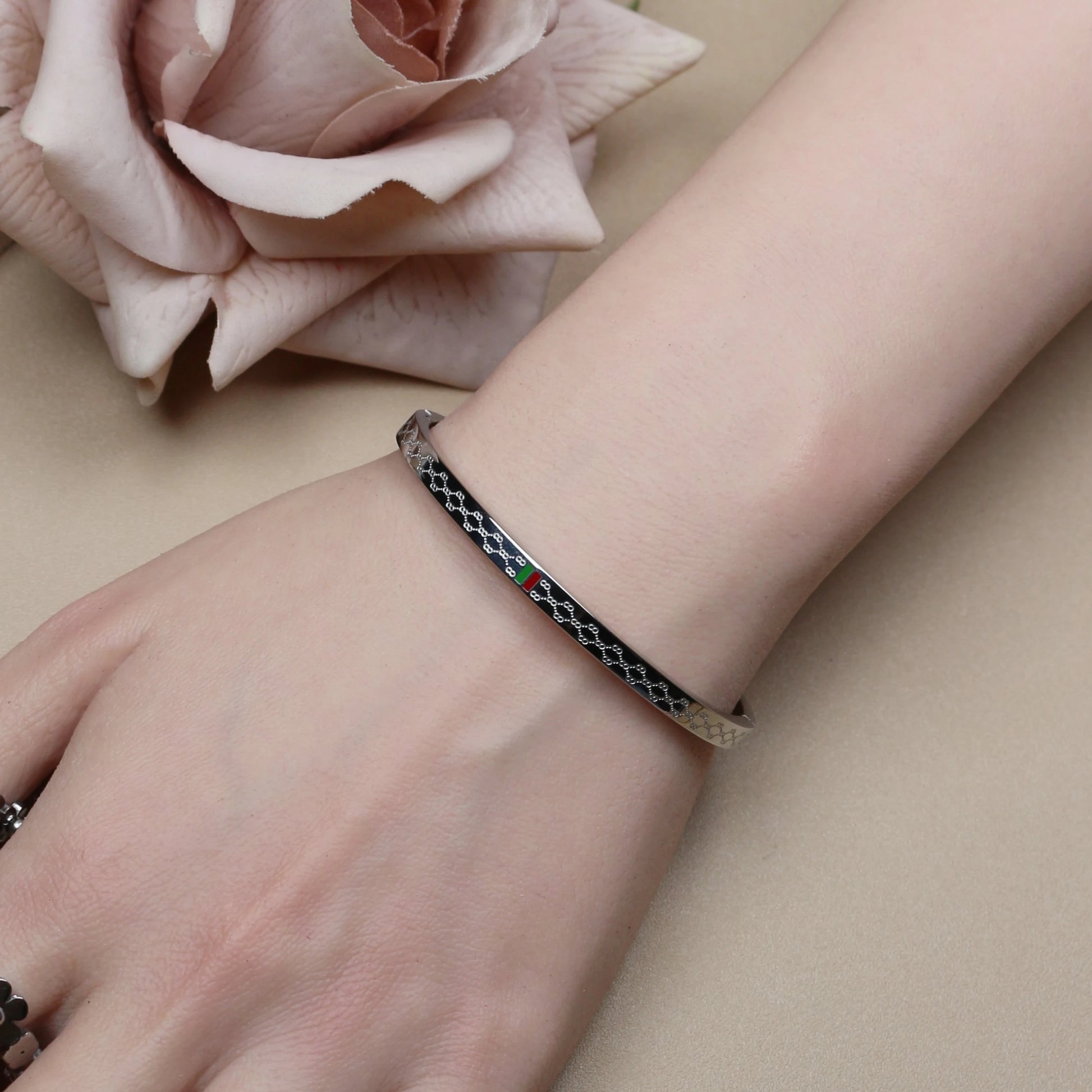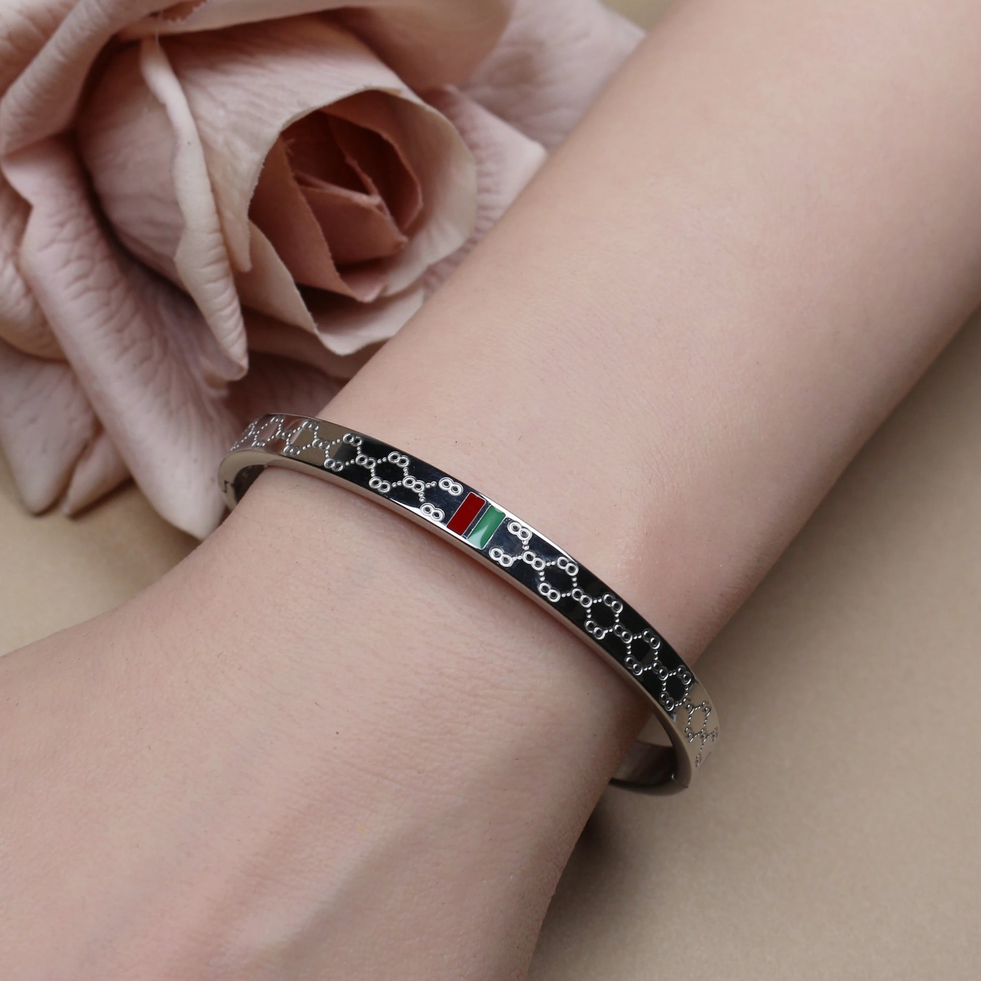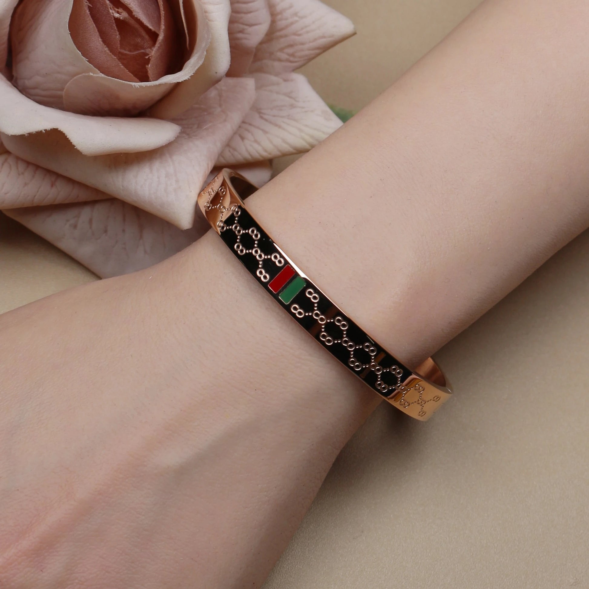18K Gold Plated Unisex Bangles with Red/Green Accents