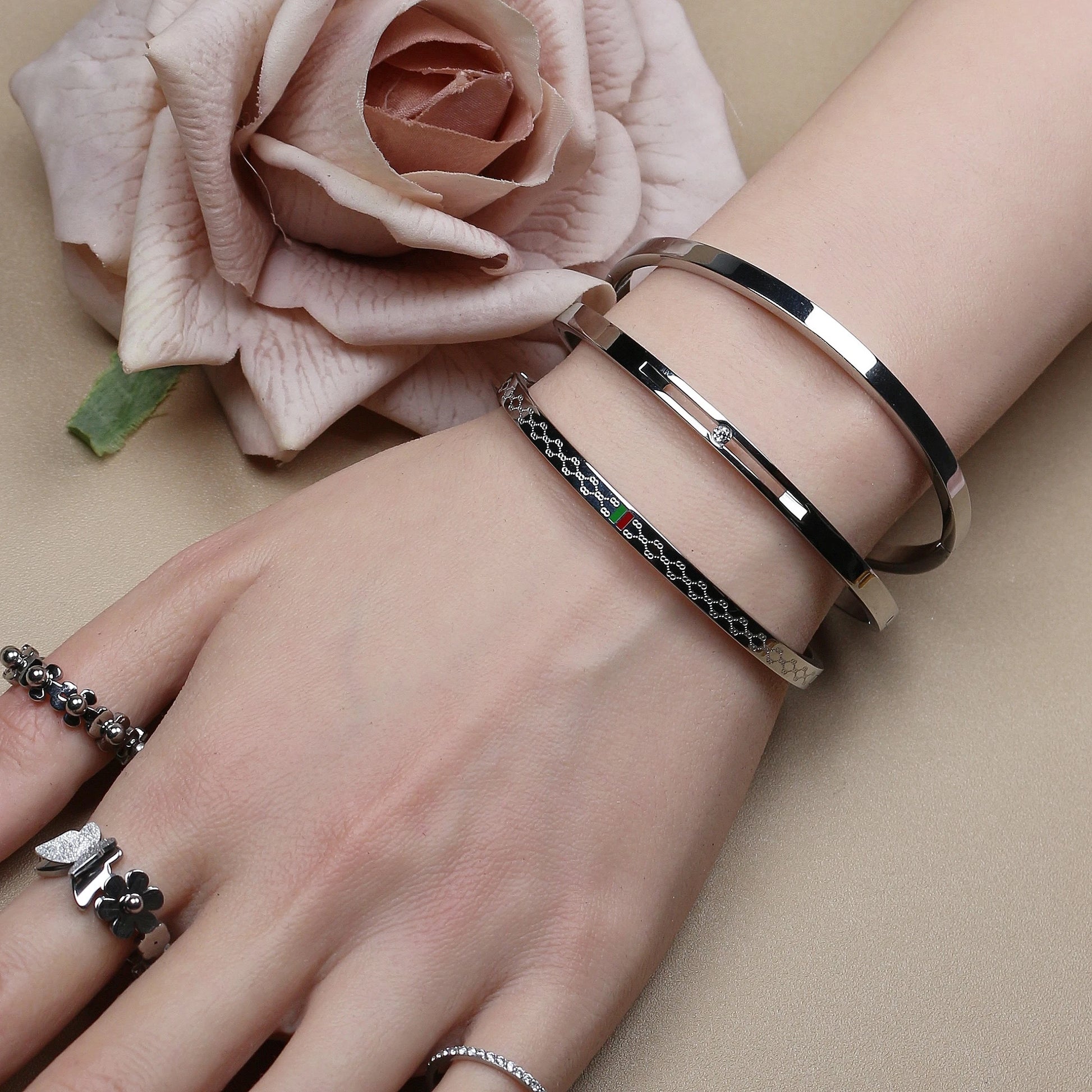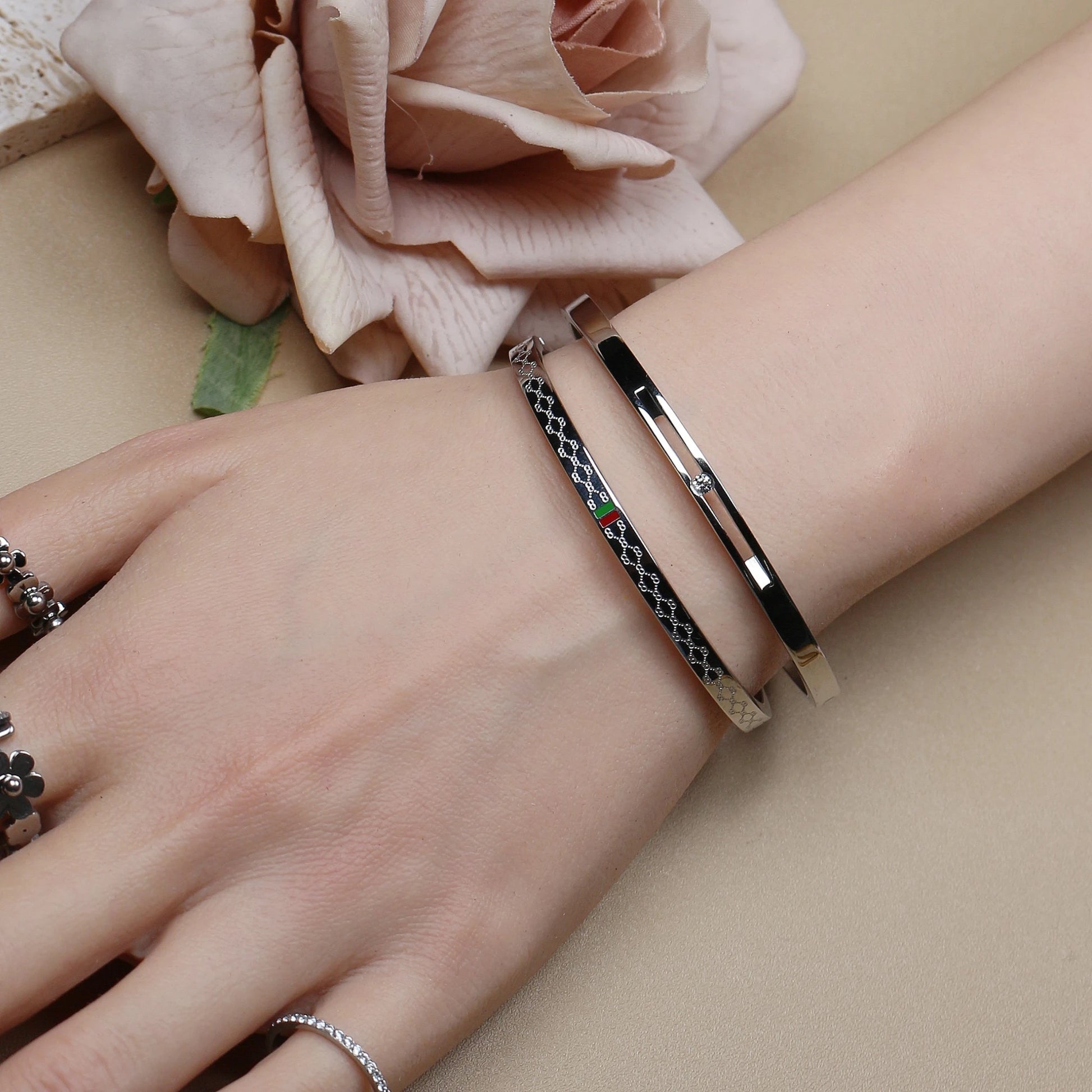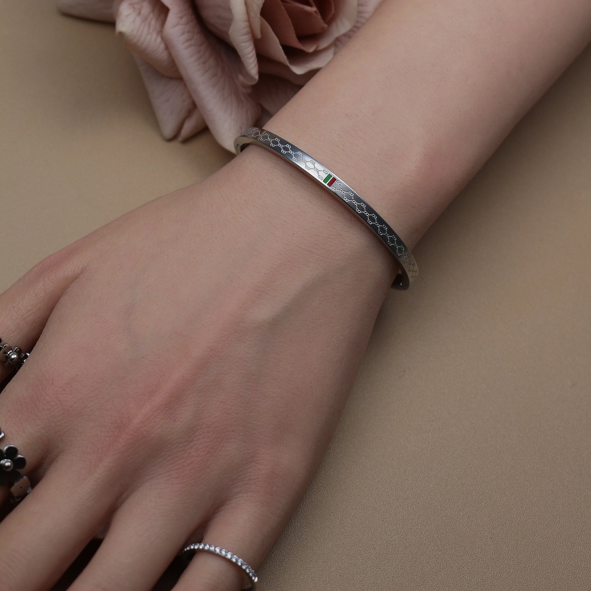 Stand out with these 18K Gold Plated Stainless Steel Bangles, designed in a bold 55MM size with striking red and green accents. Fashionable and versatile, these unisex bangles are perfect for both men and women who want to express their unique style. Crafted with durable stainless steel and finished in luxurious 18K gold plating, they combine strength with elegance for everyday wear or special occasions. A modern jewelry piece that adds color, confidence, and sophistication to any look.