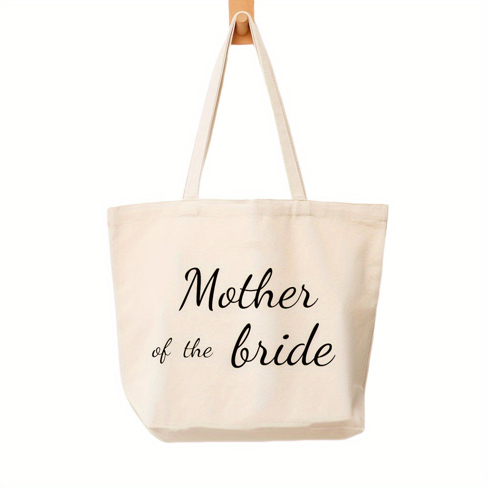 1pc, Mother Of Bride/Mother Of Groom Canvas Bag Wedding Decoration Gift Bag Gift For Mom At Wedding, Large Tote Top Handle Shoulder Bags, Shopping Travel Work Reusable Portable Tote Bag, Party Supplies, Holiday Supplieso