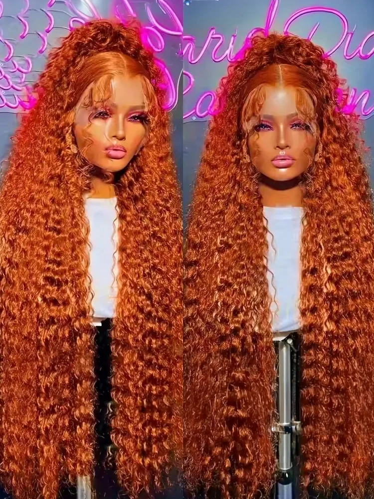 200 Density Orange Ginger 13x6 Lace Frontal Wig Curly Human Hair Wigs 30 40 Inch Deep Wave 13x4 HD Lace Front Human Hair Wig