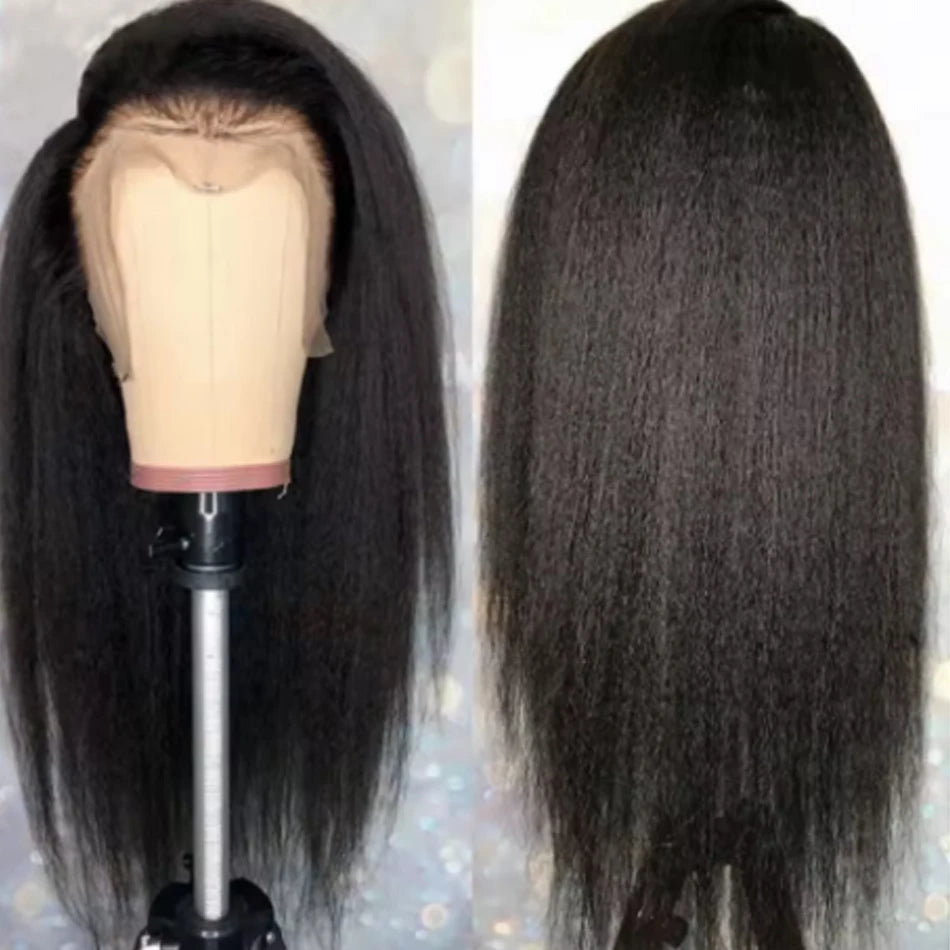30inch Best Kinky Straight Lace Front Wig HumanHair 13x6 Transparent Lace Frontal Yaki Straight Brazilian Glueless Wig For Women