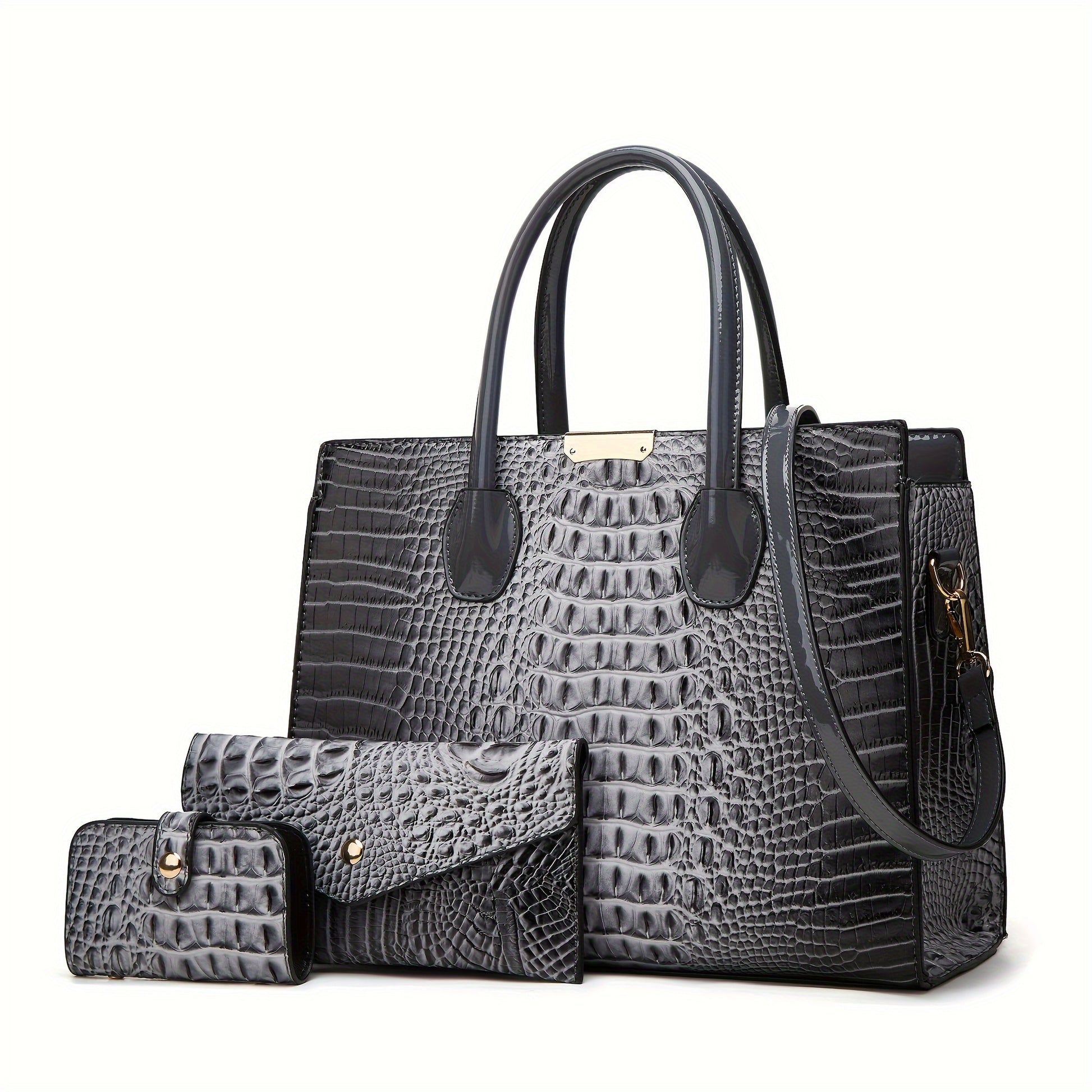3pcs Stylish Tote Bag Set – Premium PU leather textured shoulder bags designed for modern women. This versatile set includes a spacious tote, a matching handbag, and a convenient card holder. Durable, elegant, and perfect for daily use, travel, or work. Combining functionality with chic design, it’s the ideal choice for women who value both style and practicality.