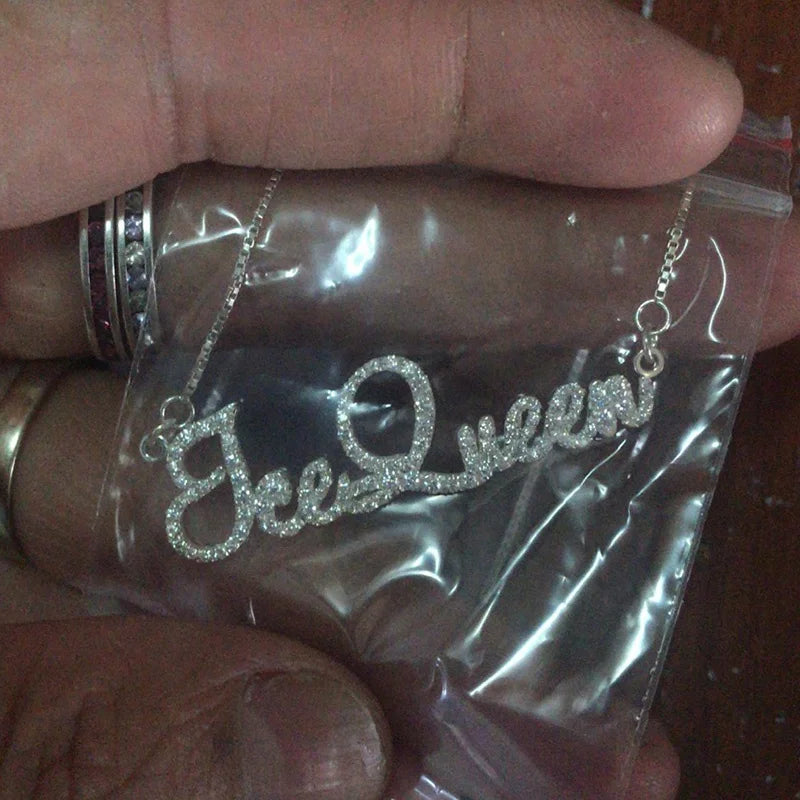 Solid Silver Custom Name Moissanite Necklace Wedding Gift Personalized Nameplate Iced Diamond Necklaces