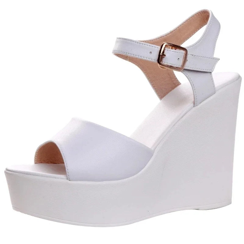 BEYARNENew Black White Fish Mouth Genuine Leather Sandals Wedges Platform High Heeled Sandals6 / 8 / 11Cm Big Size Women Sandals