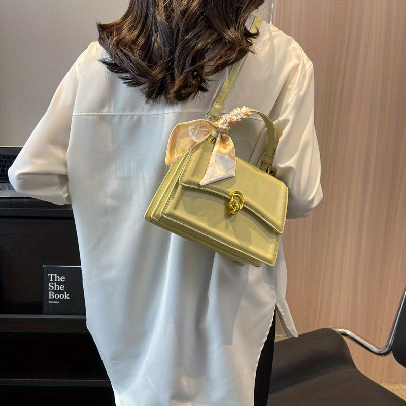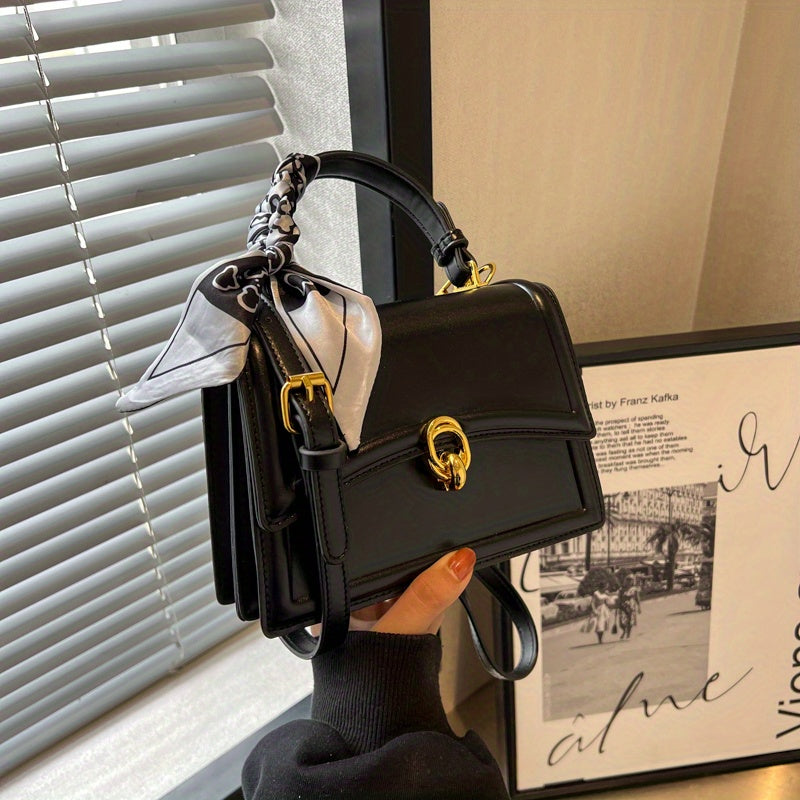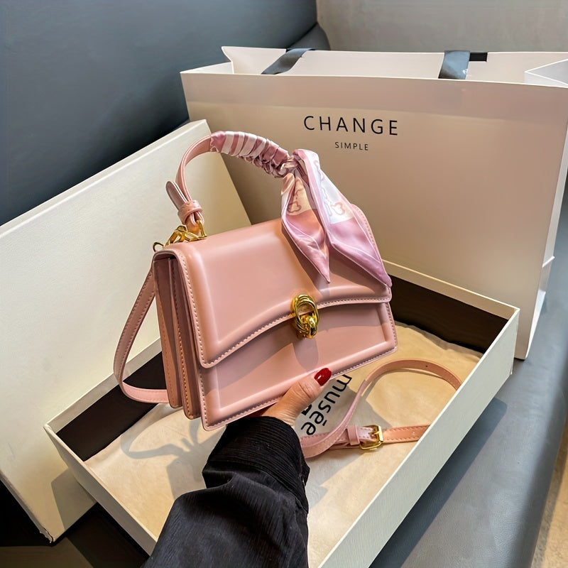 Handbag, Trendy Scarf Decor Crossbody Bag, Women's Small PU Leather Flap Purse