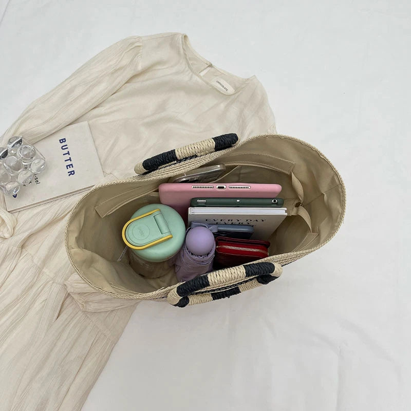 Handmade Woven Straw Beach Bag – Large Summer Tote for Women