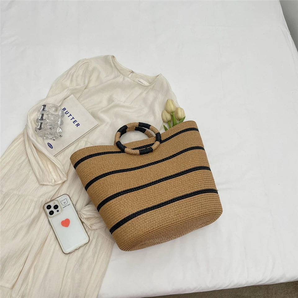 Handmade Woven Straw Beach Bag – Women’s Summer Shoulder Tote Handbag