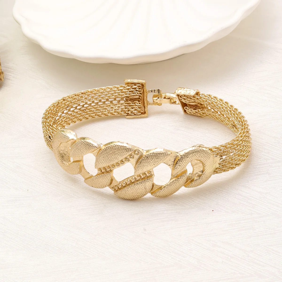 Gold Color Jewelry Sets for Women Bridal Indian Necklace Set Nigerian Choker Necklace Wedding Bracelet Earring Ring