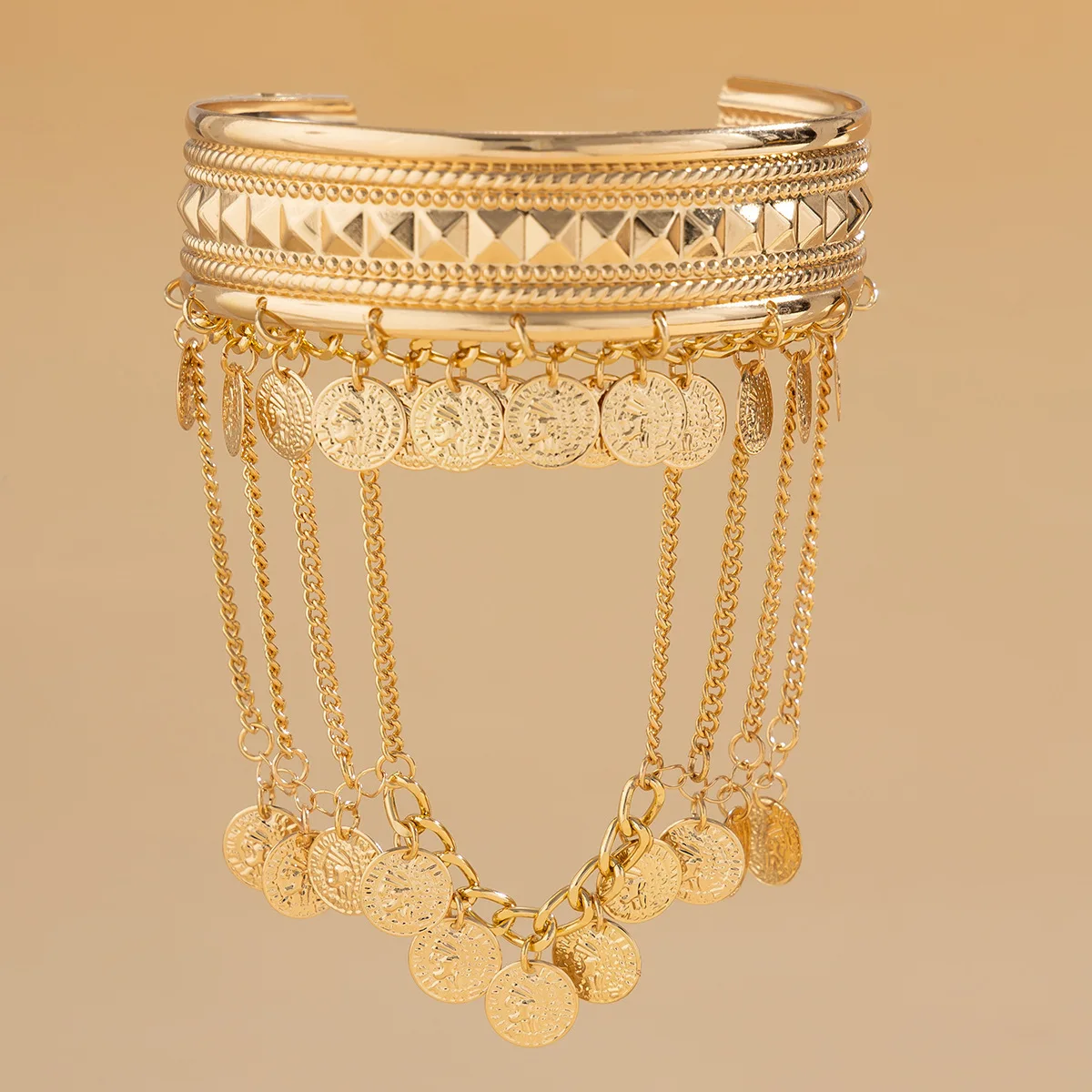 <li>Design: Metal Bracelet with Dangling Coin Tassels</li>