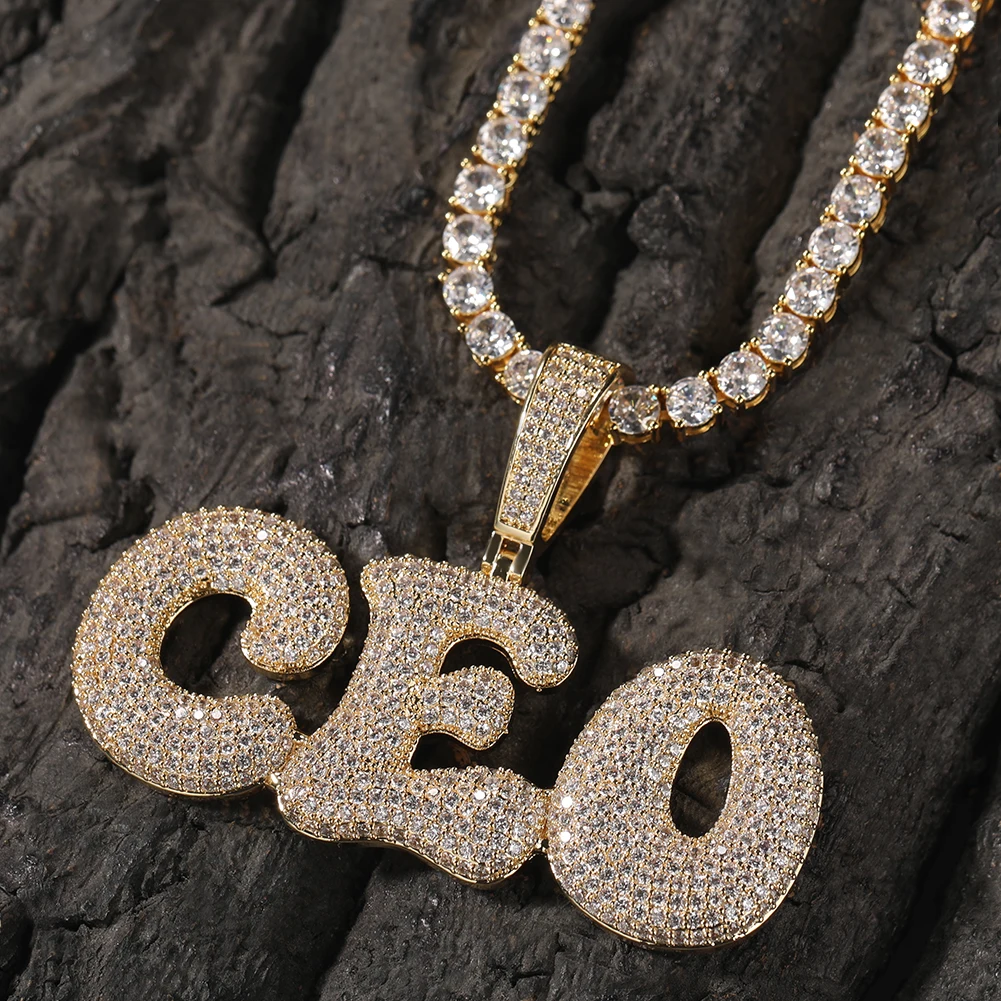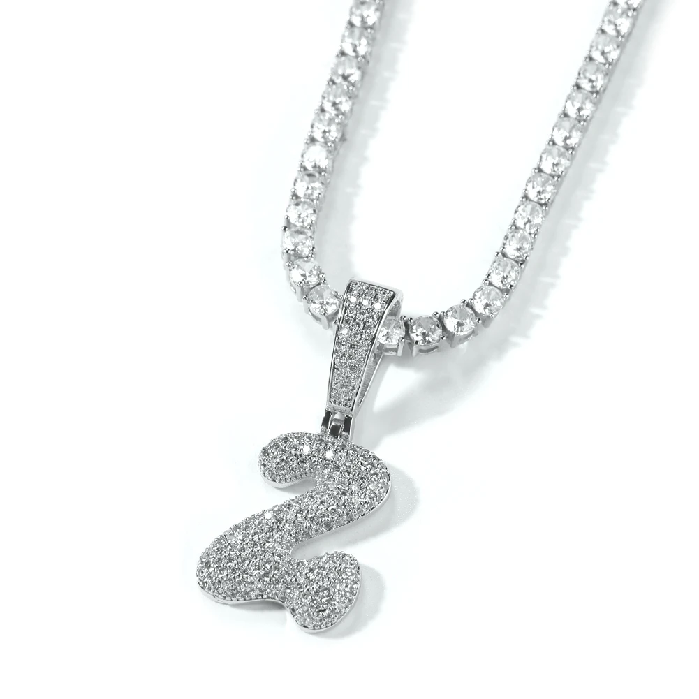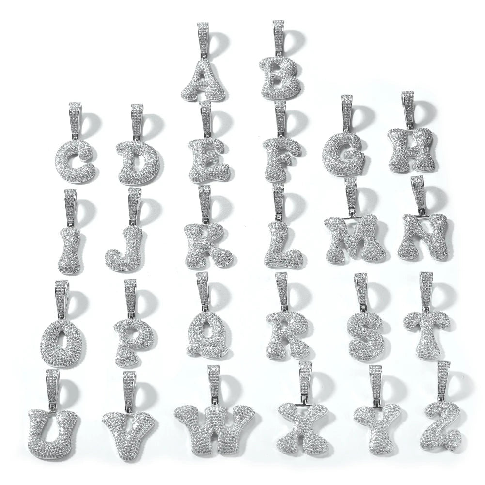 New Men's Trendy Creative Iced Out Cz Initial Pendant Necklace Custom Diamond Bubble Font Letter Name Jewelry