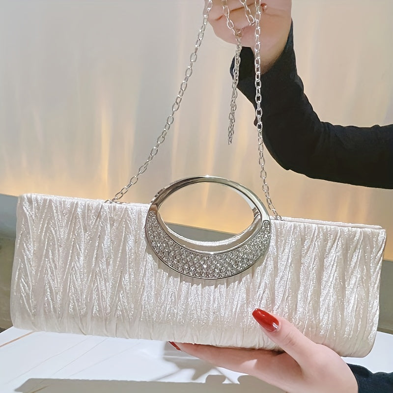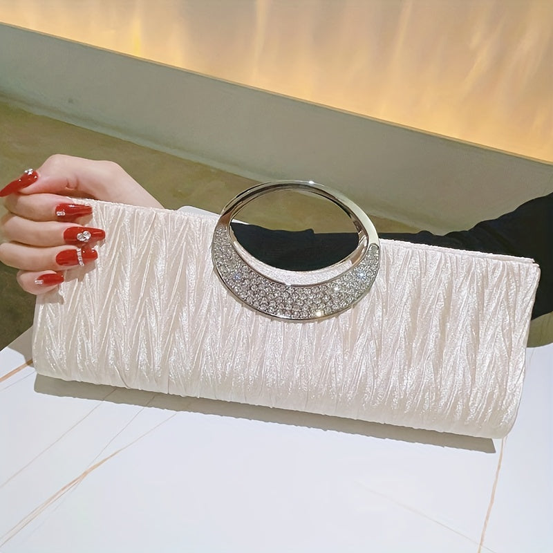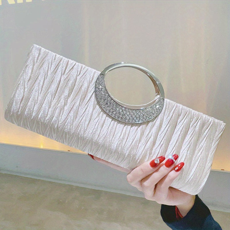 Ruched Satin Evening Bag, Elegant Clutch Purse For Women, Rhinestone Decor Handbags For Party Wedding Prom