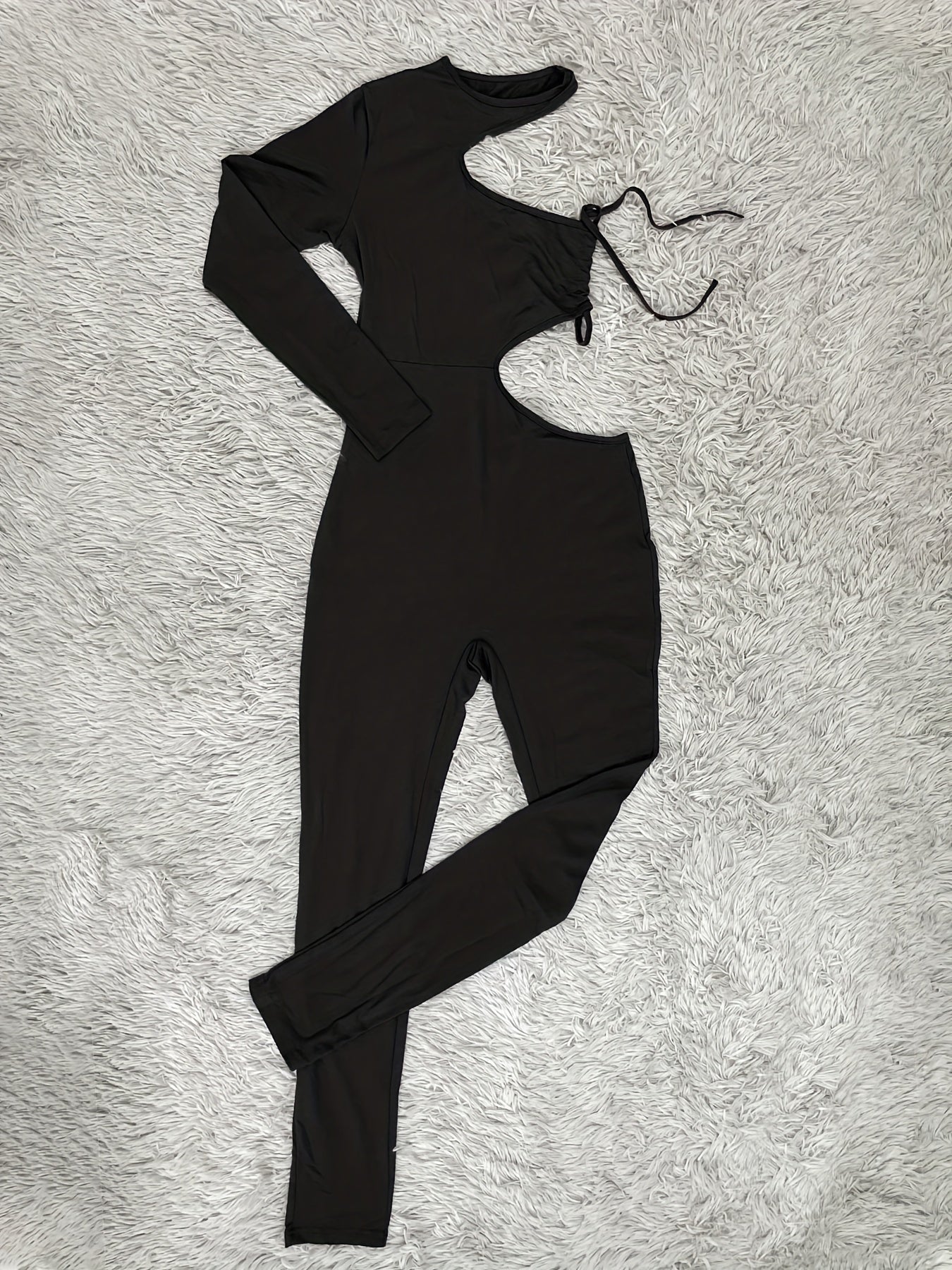 Sexy Asymmetrical One Shoulder Bodycon Jumpsuit - Mid Elasticity, Crew Neck, Solid Color, Polyester, Knit Fabric, Summer Casual Wear for Women - No Sheer, No Printing, Bandeau Style