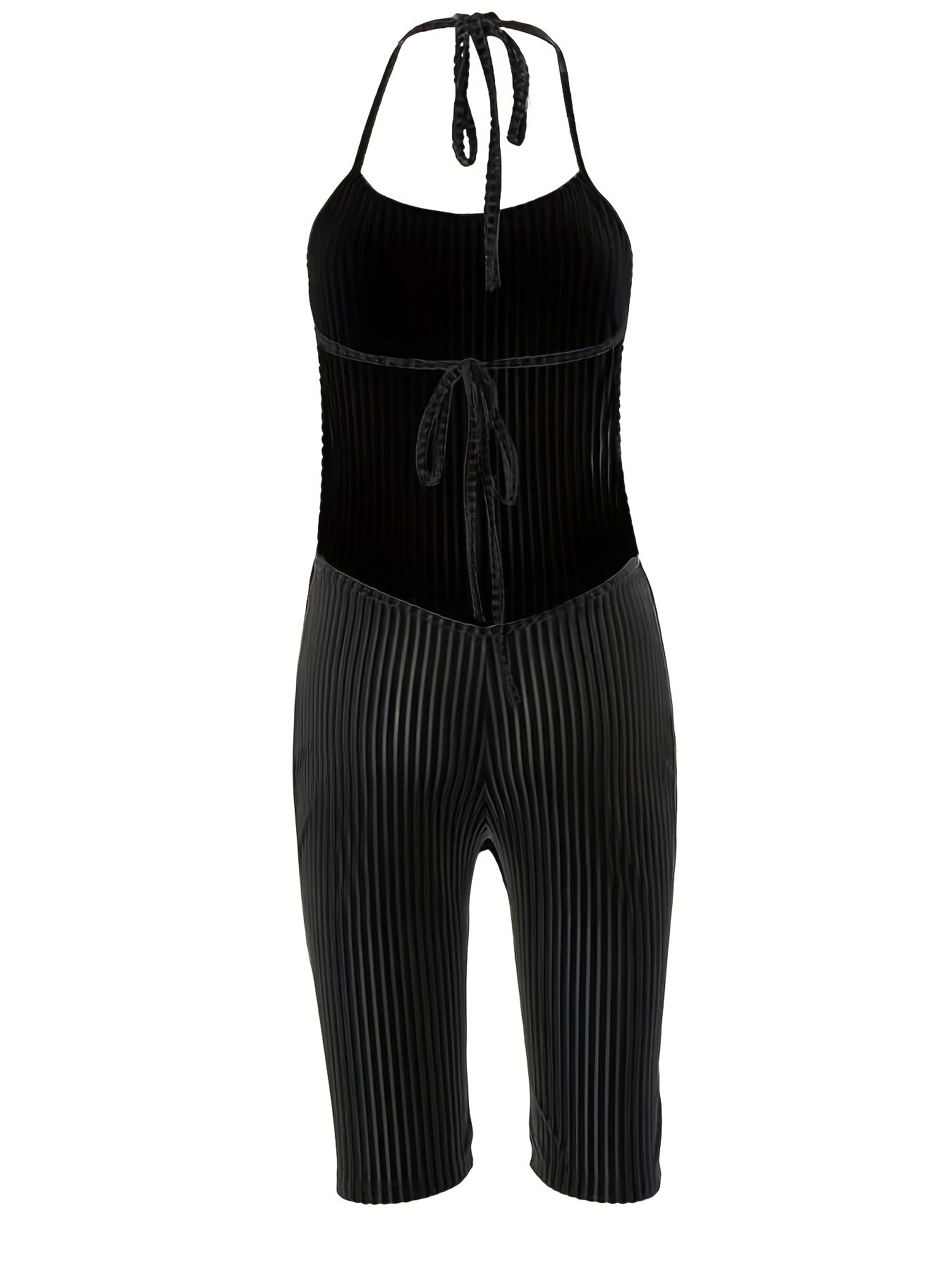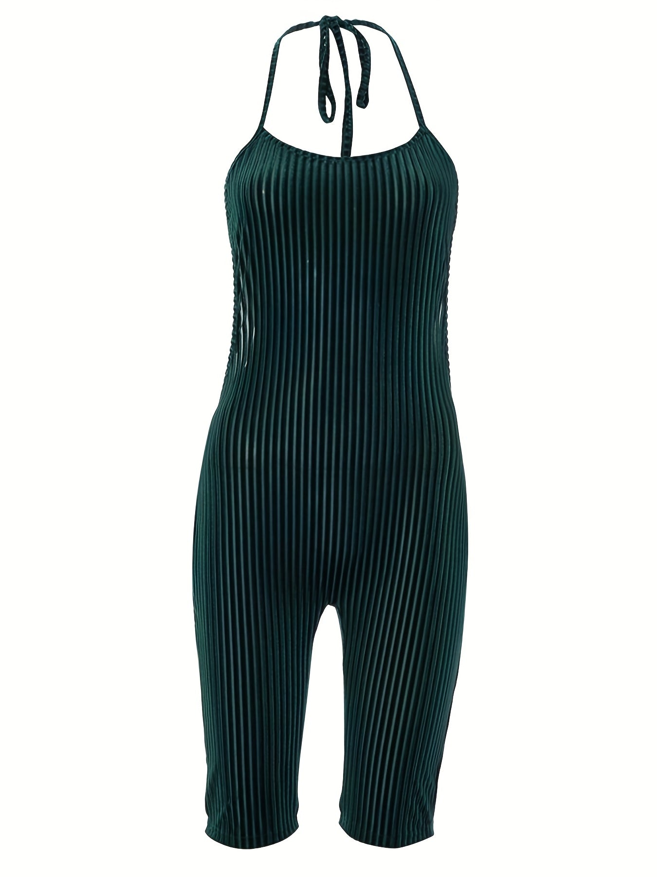 Sexy Velvet Halter Romper for Women - Backless Tie-Up Jumpsuit with Ribbed Texture, Machine Washable, Green, Perfect for Spring/Summer Parties, Plus Rompers And Jumpsuits
