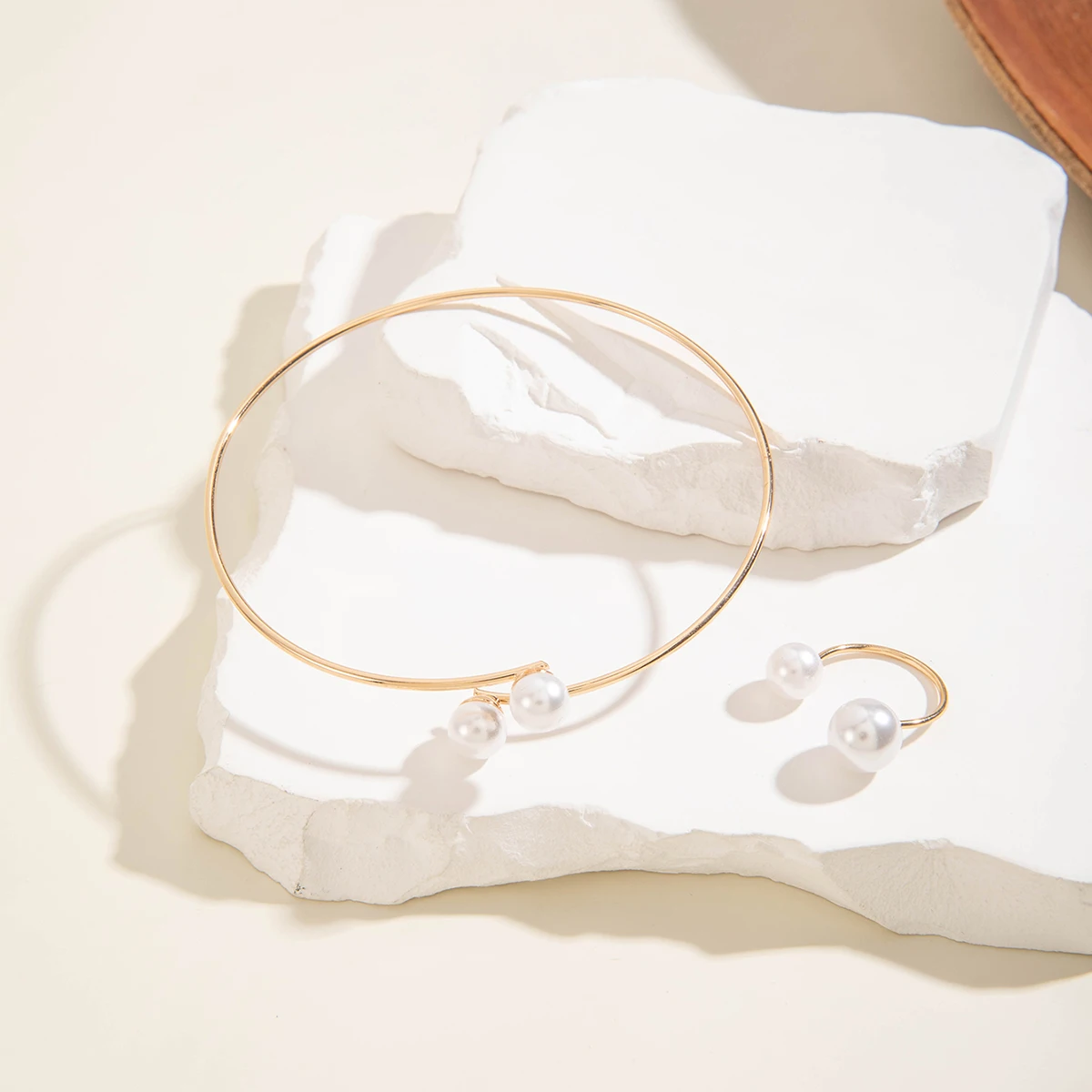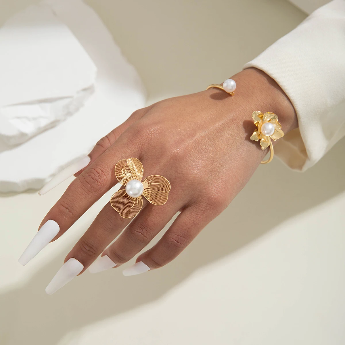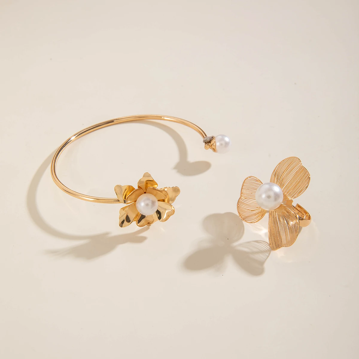 Fashiona Colored Rhinestone Butterfly Flower Imitation Pearl Irregular Ring Bracelet set Suitable for women