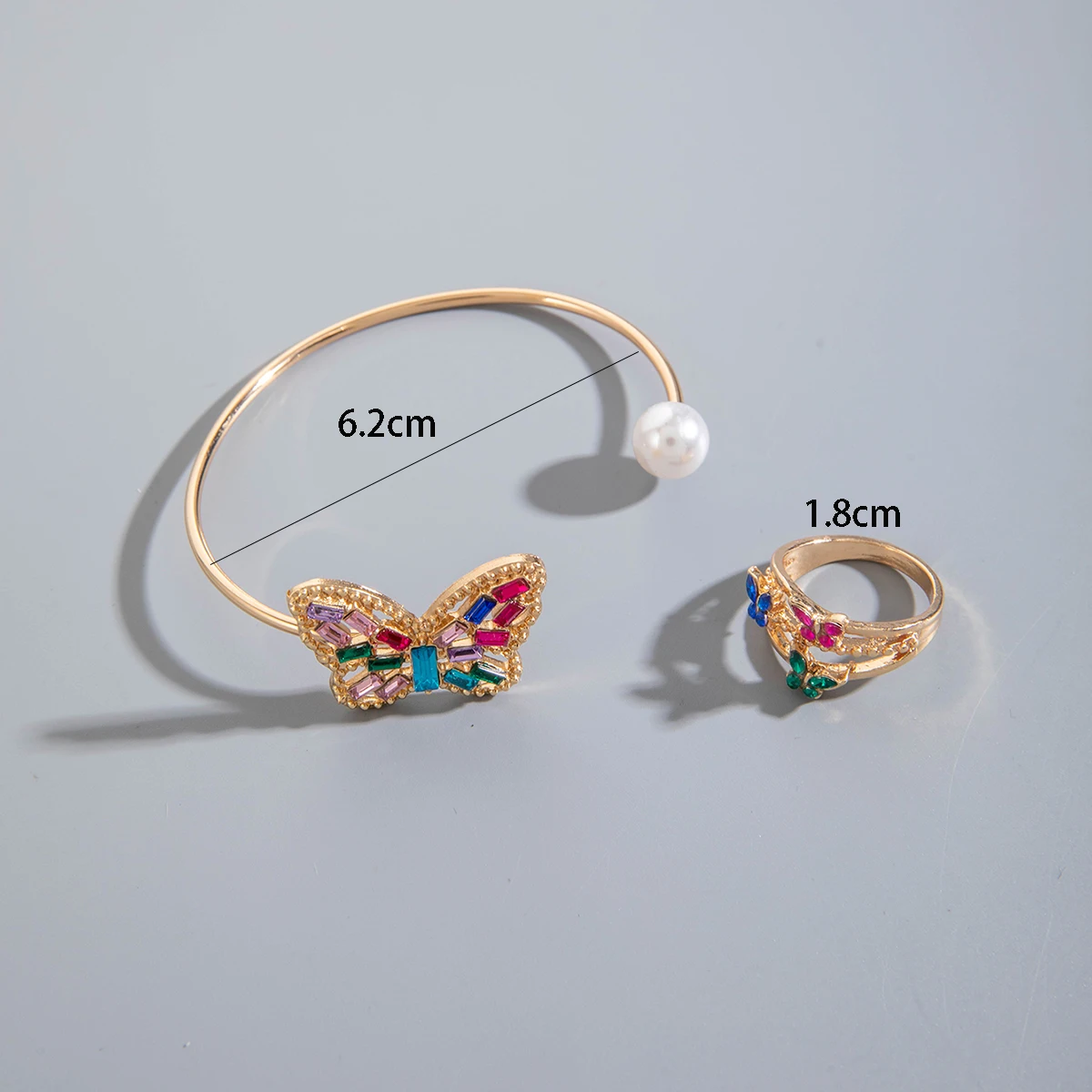 <p><strong>Fashion Colored Rhinestone Butterfly & Flower Ring Bracelet Set</strong> – Add sparkle and elegance to your style with this stunning jewelry set. Featuring colorful rhinestones, delicate butterfly and flower accents, and imitation pearls, this irregular design blends luxury with creativity. Perfect for women who love unique accessories, this bracelet and ring set is ideal for parties, weddings, proms, or daily wear.</p>