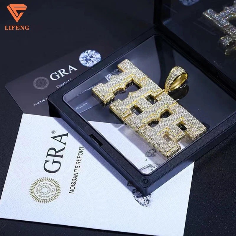 Moissanite Pendant 925 Silver White Gold Plated Letters Pendent Choker Name Personality Pendant Charm